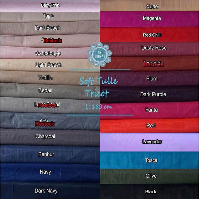 Tricot / furing tempel adalah jenis kain furing yang mempunyai keungulan dalam pemasangan yang sangat mudah, hal ini di karenakan cara . Lining atau furing dapat didefinisikan sebagai bahan kain tambahan. Cek furing kain bahan tricot ori atau furing kain bahan tricot kw . Kain soft tulle tricot / furing tulle tricot (per 0,5 meter). Kain tricot merupakan salah satu material pelapis pakaian (lining) .
